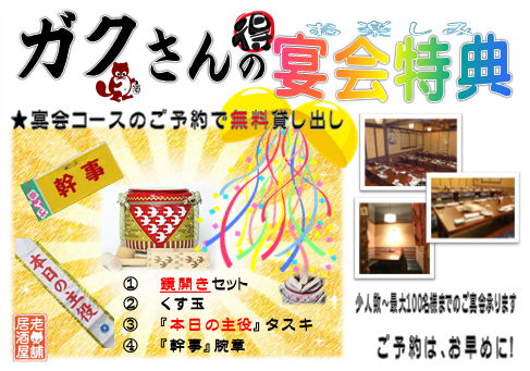 ガクさんで宴会のご予約をした方に、宴会グッズの貸し出しを行っております。